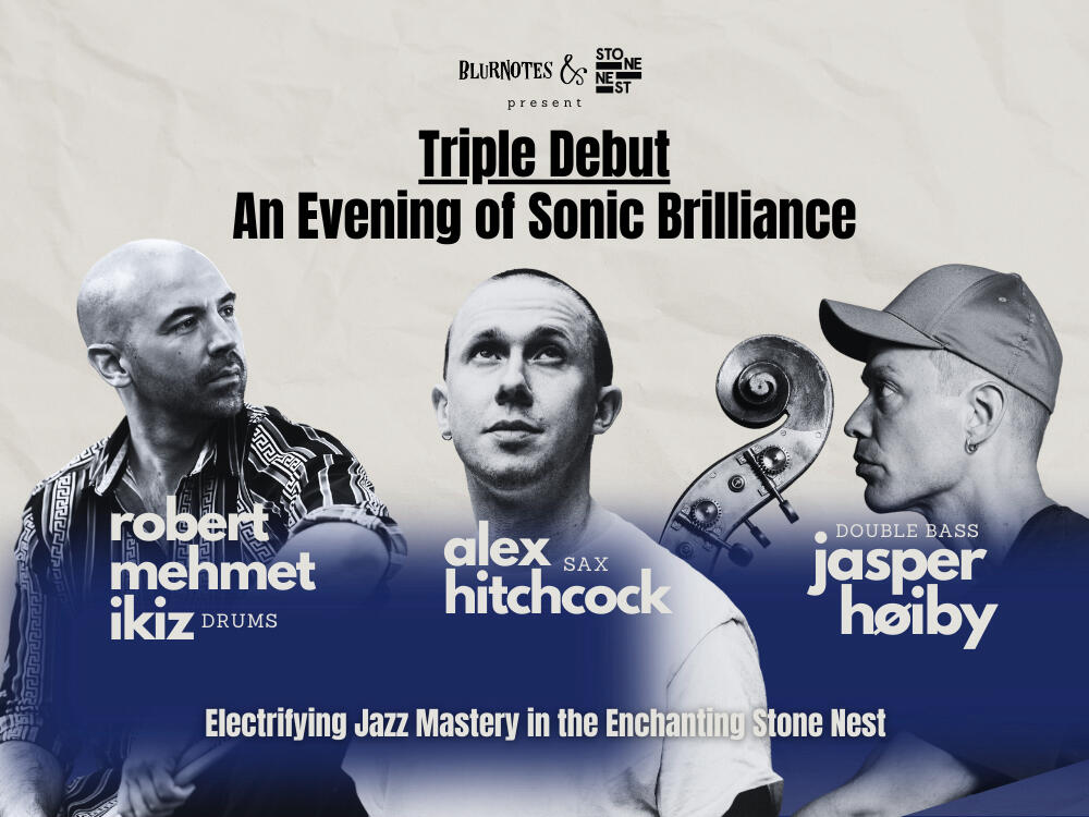 Recorded in the resonant stone architecture of Stone Nest, this live performance brings together three defining voices of contemporary jazz: saxophonist Alex Hitchcock, bassist Jasper Høiby, and drummer Robert Mehmet Ikiz. Intricate compositions dissolve into fearless improvisation, shaped by deep rhythmic conversation and harmonic tension. The concert was fully documented on film by Batu Akyol, capturing not only the sound but the fragile, unrepeatable energy of the moment — a BlurNotes live recording where clarity emerges from chaos, and form blurs into freedom.